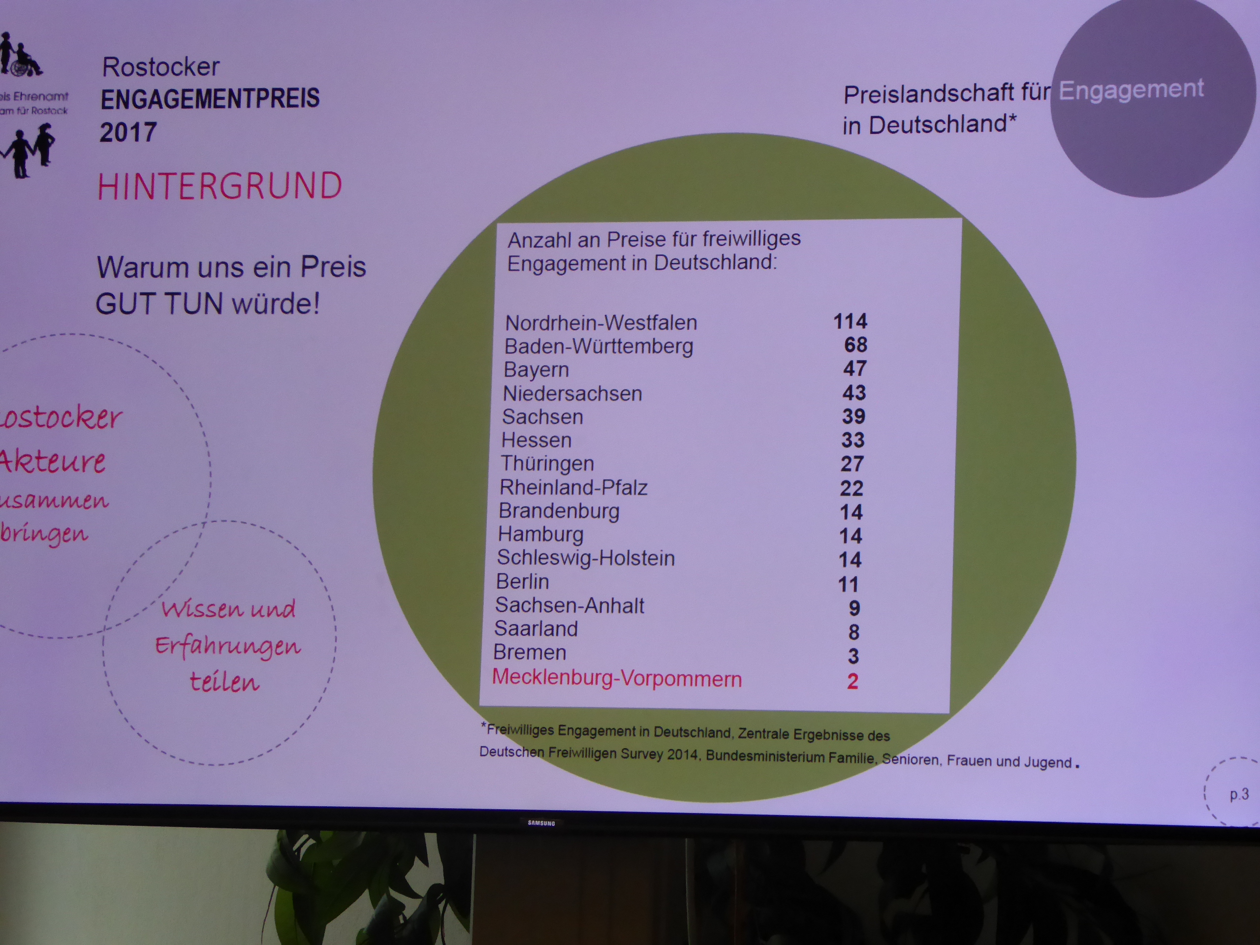 Bei der Anerkennung von Ehrenamtlichen und deren Projekte hat Mecklenburg Vorpommern richtig Nachholbedarf. Während in Nordrhein-Westfalen über 110 solcher Preis ausgelobt werden, sind es bei uns im Land gerade einmal 2. Jetzt kommt der Dritte hinzu: