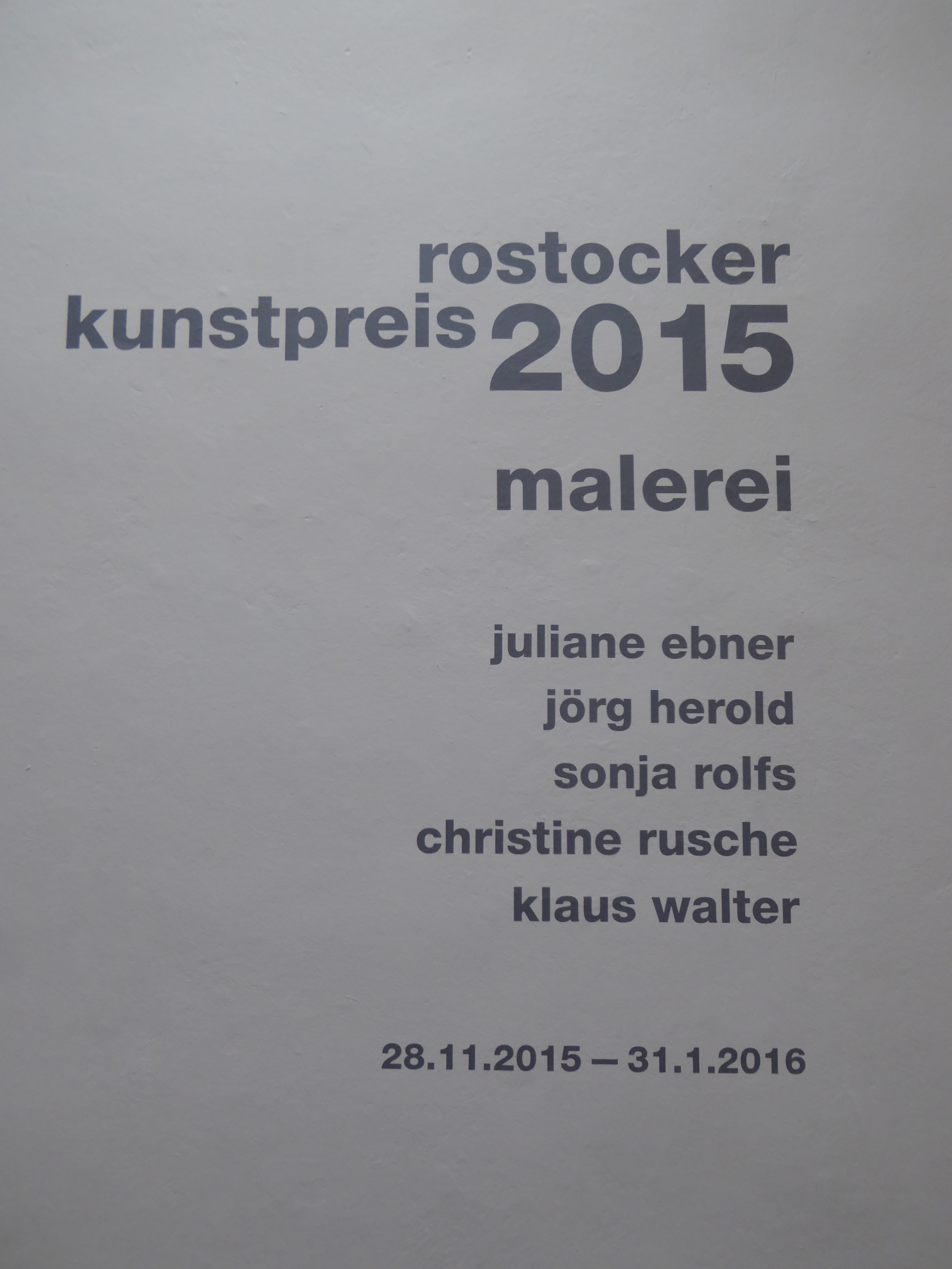 In der Rostocker Kunsthalle ist am Samstagnachmittag die Finalistenausstellung zum 10. Rostocker Kunstpreis eröffnet worden. Zu sehen sind Bilder und Arbeiten von Klaus Walter, Jörg Herold, Juliane Ebner, Christine Rusche und der Rostockerin Sonja Rolfs.