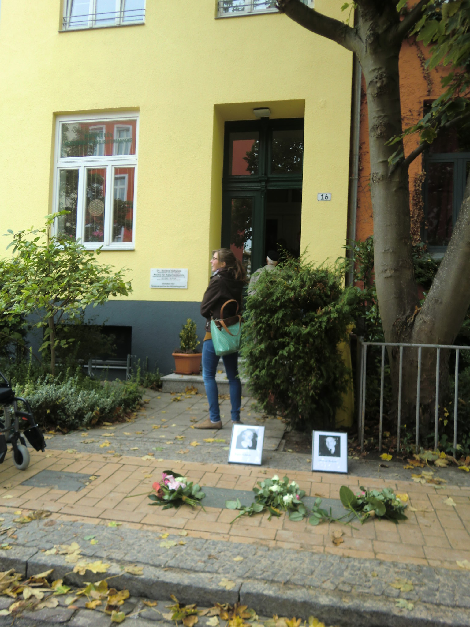 Die Steine wurden im Beisein der Enkelin und Urenkelin eingeweiht und sollen an die Juden und KZ-Opfer Regina und Abraham Michaelis erinnern. Das Paar wurde von den Nazis in den Lagern Theresienstadt und Auschwitz ermordet.