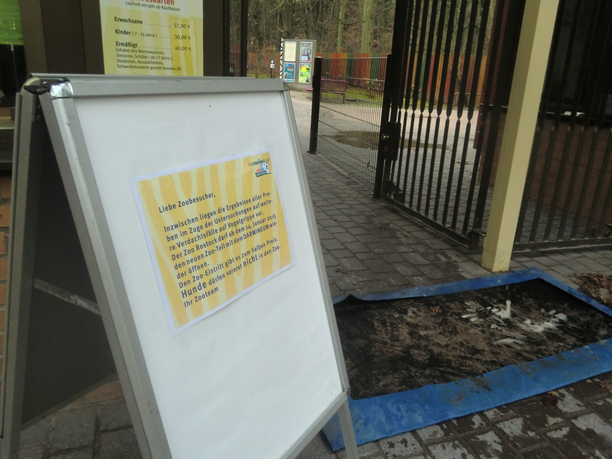 Nach der Entdeckung des Vogelgrippevirus H5N8 musste der Rostocker Zoo am vergangenen Donnerstag geschlossen werden. Von den insgesamt rund 500 im Zoo beheimateten Vogeltieren wurden knapp 60 getötet.
